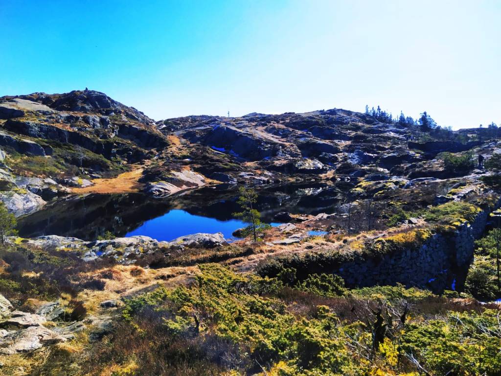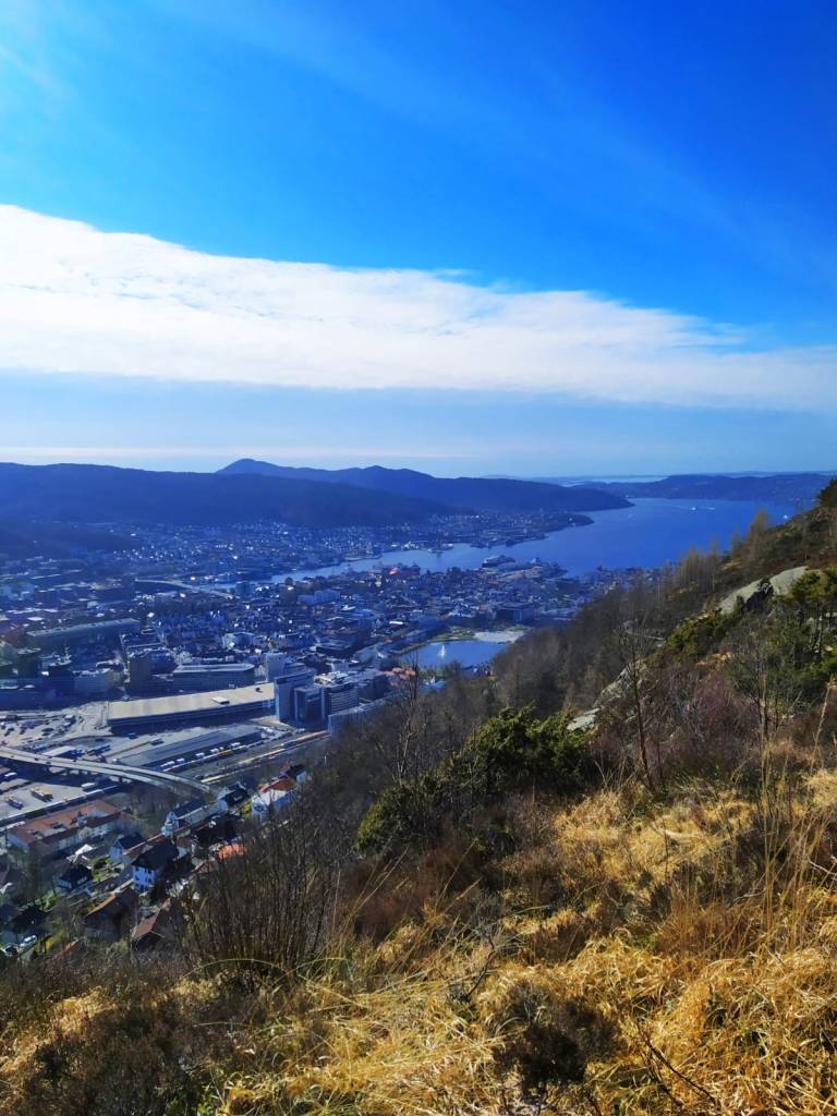 Jednou takhle v neděli (už víme, že v neděli všichni Norové jdou na hike) jsme se rozhodli pro delší túru přes tři bergenské hory – celkově trasa vyšla lehce přes 20 km, které jsme šli asi 5 hodin (s velkými přestávkami na baštu a kochání se výhledy).