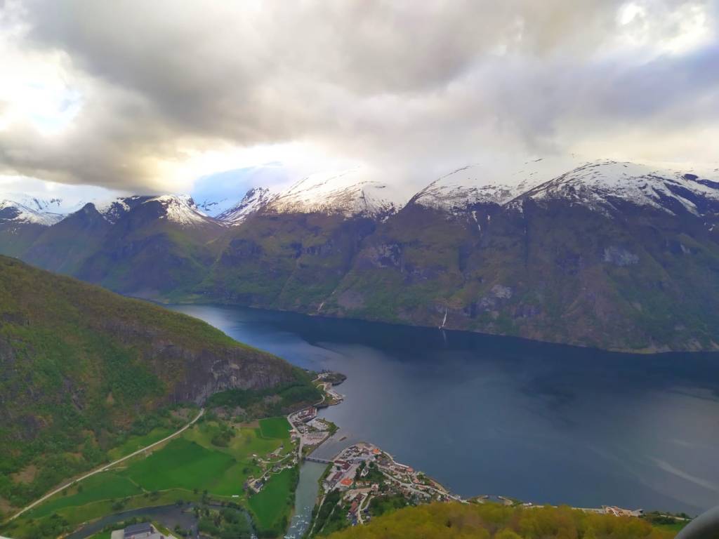 Jednou z našich posledních zastávek druhého dne je pak vyhlídka Stegastein, která se nachází v nadmořské výšce 650 metrů nad kouzelným Aurlandfjordem. Cesta k vyhlídce je úzká a klikatá, ale výhled rozhodně stojí za to.