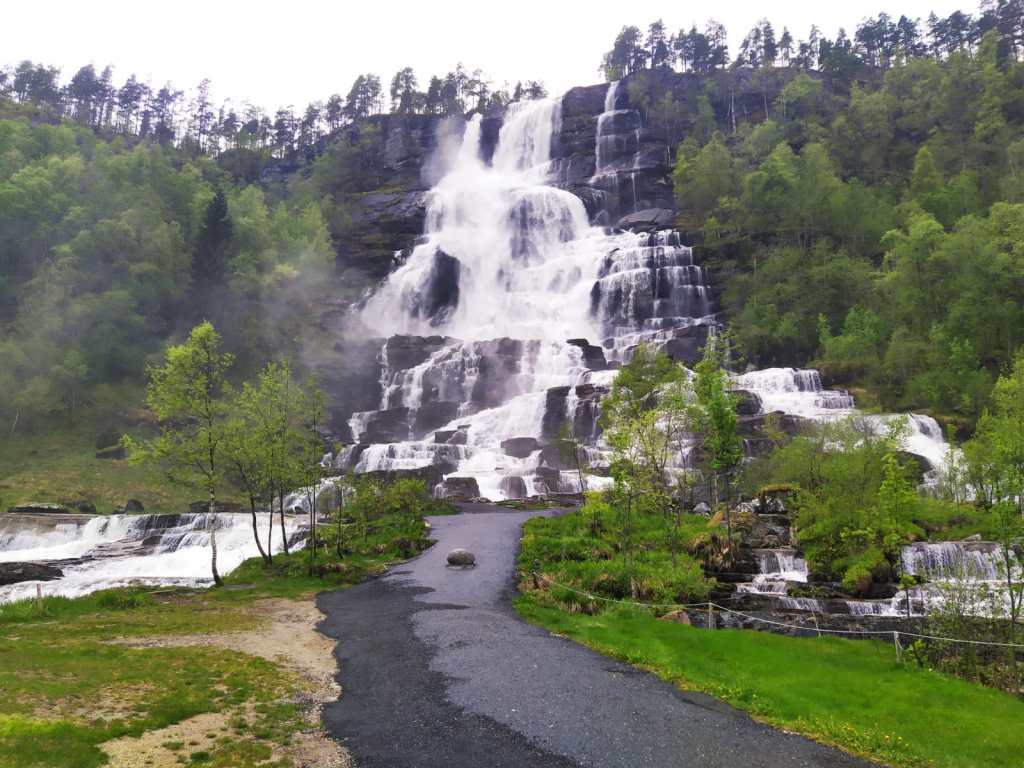 Ze Sundalu jsme pak vyrazili 11 km dlouhým tunelem do města Odda, blízko kterého se mimo jiné nachází nejznámější norské místo – Trolltunga. My jsme ale pokračovali směrem na jih, abychom viděli další krásné slavné vodopády – Tjørnadalsfossen – opravdu vysoký vodopád, ke kterému si ale budete muset pár metrů do kopečka dojít – a Låtefossen – mohutný dovopádový dvojčata, které je možné vidět hned ze silnice. Po cestě k nim ale uvidíte mnoho další velkých vodopádů, u kterých můžete zastavit, nebo je minimálně vidět z okénka.