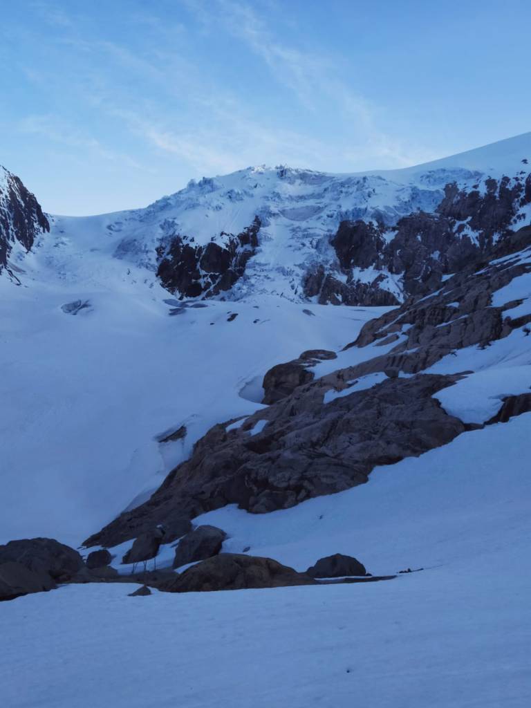 Kousek pod parkovištěm, u místa, kde skončil zákaz kempování, jsme to kousek od cesty zalomili, hned vedle řeky. Kempování bylo super a ani nebyla zima. Není nic lepšího než ranní probuzení s výhledem na ledovec :).