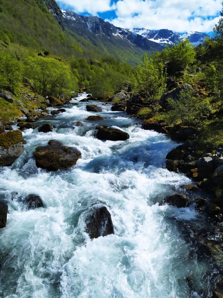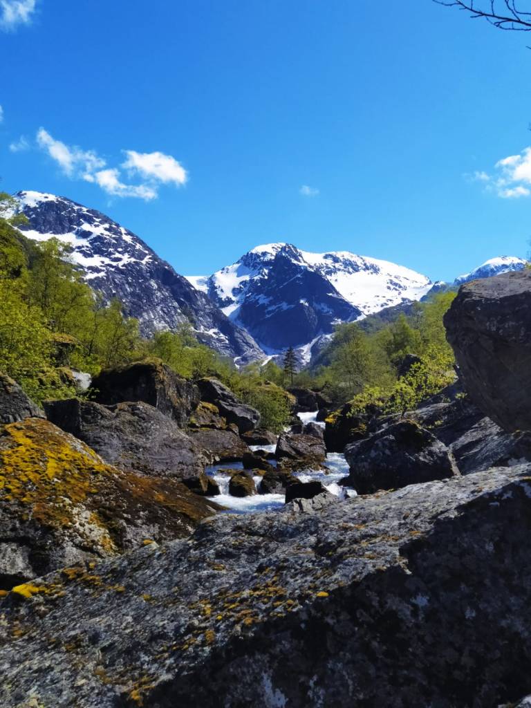 Další v pořadí byla vesnice na cestě zpět směrem k Jondalu – Sundal, ze které vede stezka k nádhernému ledovcovému jezeru Bondhusvatnet. Na začátku stezky je rozlehlé parkoviště, cesta je upravená a celou dobu se procházíte vedle divoké horské řeky, která protéká mezi vysokými horami. Jezero je tak krásné, že to ani nejde popsat. My měli ještě o to větší štěstí, že jsme na místě byli úplně sami, a tak jsme si mohli vychutnat klid, krásu a výhled na ledovcový splaz Bondhusbreen, který už bohužel nebyl téměř vůbec vidět, kvůli rozsáhlému tání v posledních letech.