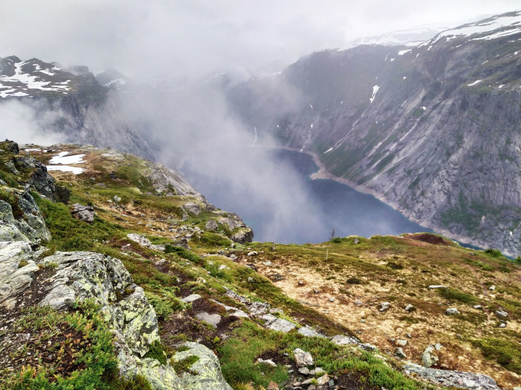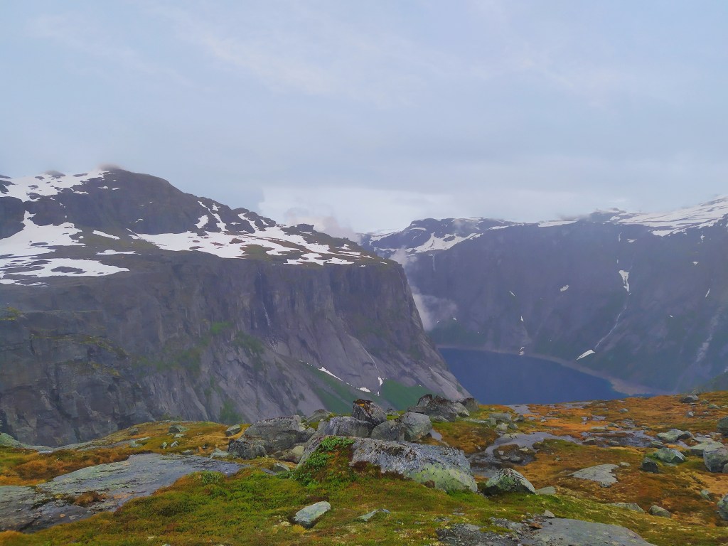 Na konci našeho naplánovaného cestování po severním Norsku jsme si dali malou pauzičku, abychom si taky chvíli oddechli. Výšlap na Trolltungu jsme tedy odsunuli až na polovinu července, pár dní před naším odjezdem z Norska. Nicméně počasí se na začátku července rozhodlo, že léta a tepla jsme si už užili až dost a výhled na nejbližších 14 dní byl opravdu bídný. A tak jsme museli začít jednat – výlet jsme naplánovali hned na druhý den. Jelikož jsme nestáli o stání ve frontě na fotku (malá fronta tam každý den byla i za koronaviru), rozhodli jsme se jíst tuto túru přes noc.