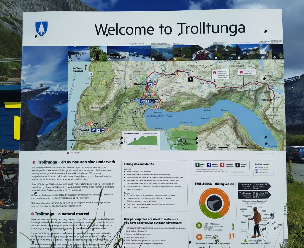 Z Tyssedalu máte jen pár možností, jak se dostat na začátek hiku – Trolltunga Shuttlebus, pěšky, stopem. Shuttle bus jezdí ze spodního parkoviště (P1), které se nachází jen pár metrů od autobusové zastávky Skogly. S ním máte možnost se dostat na P2 (nejvíce frekventované) nebo i na P3 (ušetříte si jedno pěkné stoupání), ale připlatíte si.