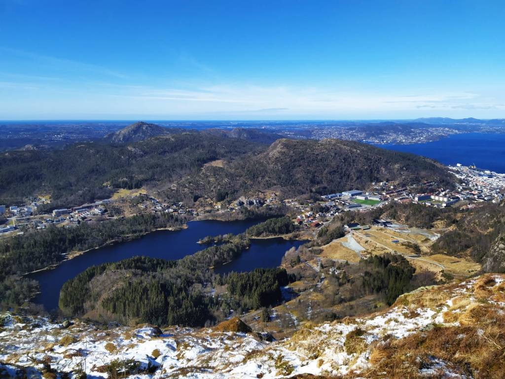 Další krásná cesta na jednu ze sedmi bergenských hor, na kterou je možné vylézt několika cestami a hlavně je v krátké pěší vzdálenosti od kolejí Hatleberg. Výhled na centrum Bergenu a městskou část Sandvik stojí za to!