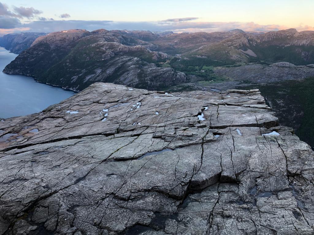 Na počasí jsme ten den měli smůlu a pršelo nám v kuse až do chvíle, než jsme se dostali k chatě, od které hike začíná – Preikestolhytta. Hike není nijak dlouhý, je hodně upravený – jde se převážně po kamenných schodech nebo skalách, celkově asi 4 km k cíli. Díky tomu, že jsme se na útes dostali ve večerních hodinách a navíc bylo celý den deštivo, jsme si celou tu placku mohli užít úplně sami :).