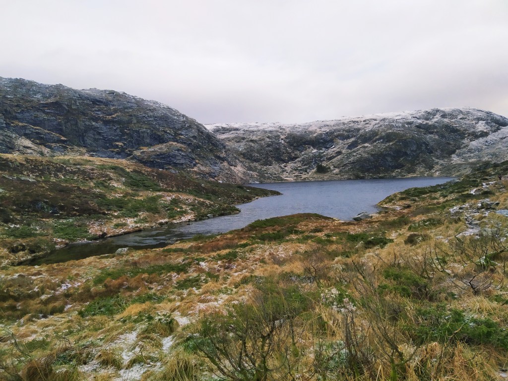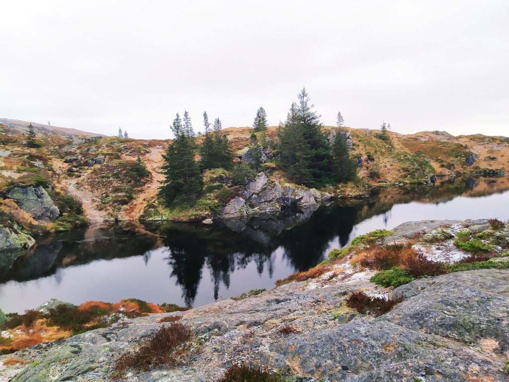 Z Rundemanen až k jezeru Tarlebøvatnet šla cesta hladce, nic náročného, krásná příroda i výhledy. U tohoto jezera je možné se vyfotit na takovém zajímavém kameni, doporučuju, ale opatrně.