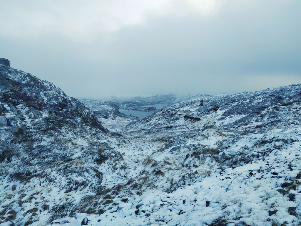 Od této chatky pak vede trošku náročnější cesta, ale ten výhled stojí za ten výšlap. Jelikož jsme podcenili počasí a nějak jsme neočekávali, že by mohlo začít sněžit, párkrát jsme v závějích sešli ze stezky a často bylo dost obtížné ji opět najít.